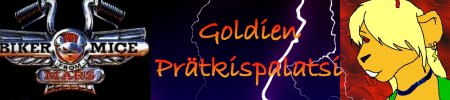 Tervetuloa Goldien Prätkispalatsiin! Olet eksynyt, joko tarkoituksella tai (todennäköisemmin) vahingossa yhden suomalaisen fanitytön kotisivuille, ja tämä tyttöhän fanittaa Prätkähiiriä Marsista (muiden muassa). Kukapa ei rakastaisi parimetrisiä humanoidihiiriä jotka pistää hännät heilumaan ja hanat auki pelastaakseen Maan plutolaisilta! Saitti ei ole kovin kummoisessa kunnossa, ja päivityksiä tulee tuskallisen harvoin, mutta niin kauan kuin mussa henki pihisee, tämä saitti pysyy netissä käsisten ja jaksoesittelyjen turvapaikkana. Niitähän saa siis mielellään lähettää paikan ylläpitäjälle täällä päin, ja toki yhteyttä saa muutenkin ottaa jos huvittaa. :) Saadun palautteen ansiosta päätin palauttaa saitille vieraskirjan. Pistäkääpä sitä kautta lisääkin palautetta tulemaan! (Tosin, pyytäisin huomioimaan, että mulla on hyvin rajallisesti aikaa, taitoa ja kärsivällisyyttä saitin rakennuksen suhteen, eli muutoksia tuskin kannattaa toivoa ihan viikon tai parin sisään näkevänsä. Teen kyllä parhaani miten taidan, kunhan kerrotte mitä haluaisitte täällä nähdä.) Lippu korkeella ja pidetään hännät heilumassa! ~ Goldie ^_~ ~